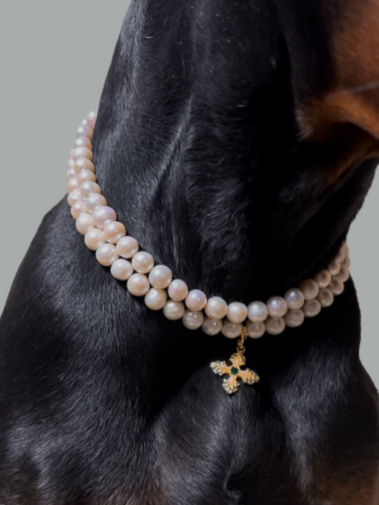 Pearls of Perfection: Our faux pearls, a blend of aesthetics and 100% pet safety, undergo meticulous crafting.